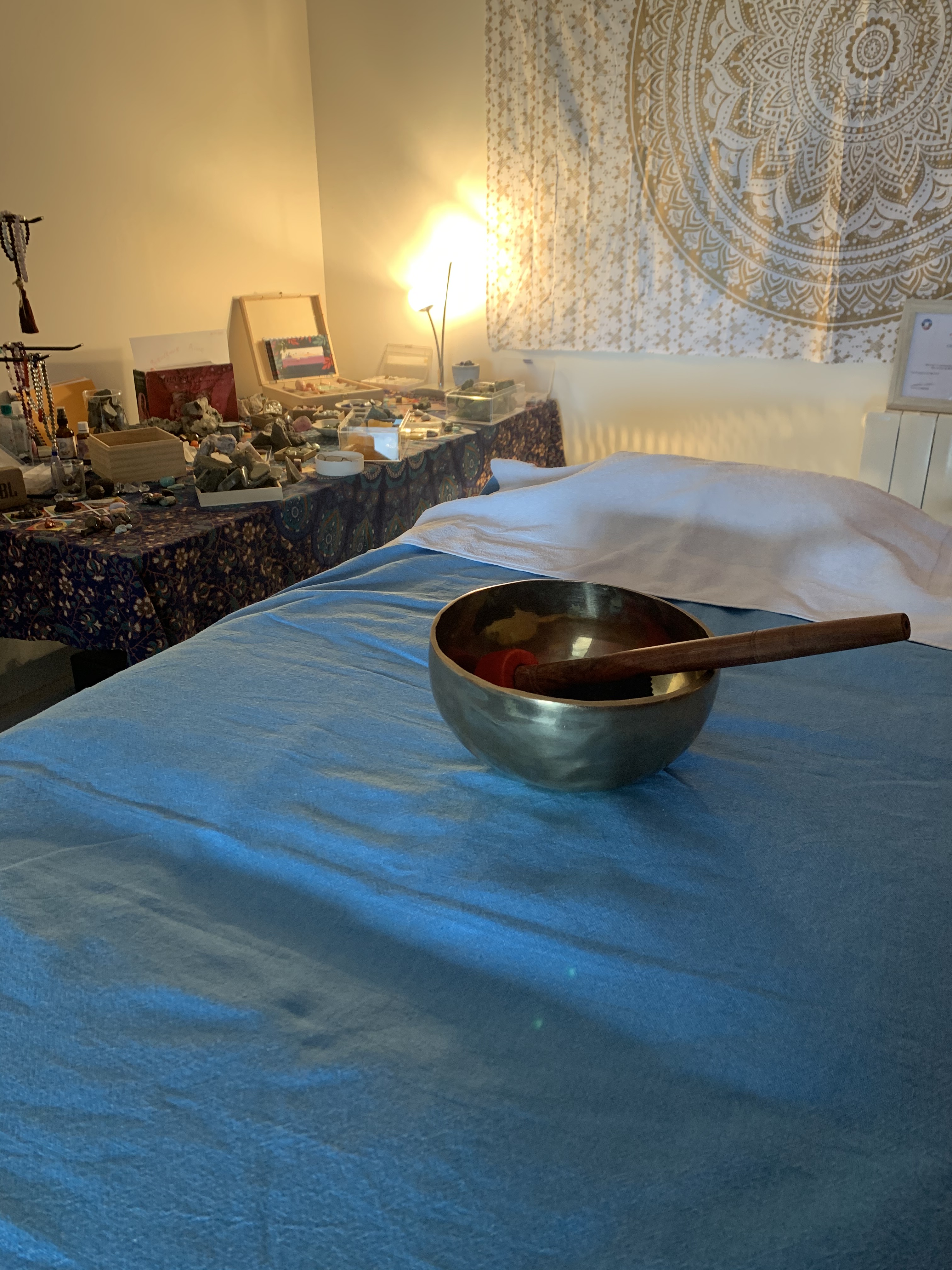 - La séance débute avec un temps d’échange accompagné ou non d’EFT si cela est nécessaire ou de cohérence cardiaque. Ce temps nécessaire me permet de comprendre vos besoins énergétiques mais aussi vous mettre en confiance;